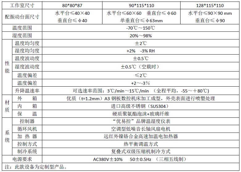 溫濕度振動三綜合試驗機主體部分:主體外殼采用優(yōu)質(zhì)A3鋼板并且經(jīng)過噴塑處理,內(nèi)膽采用SUS高級不銹鋼鏡面板保溫介質(zhì)為超細玻璃棉;